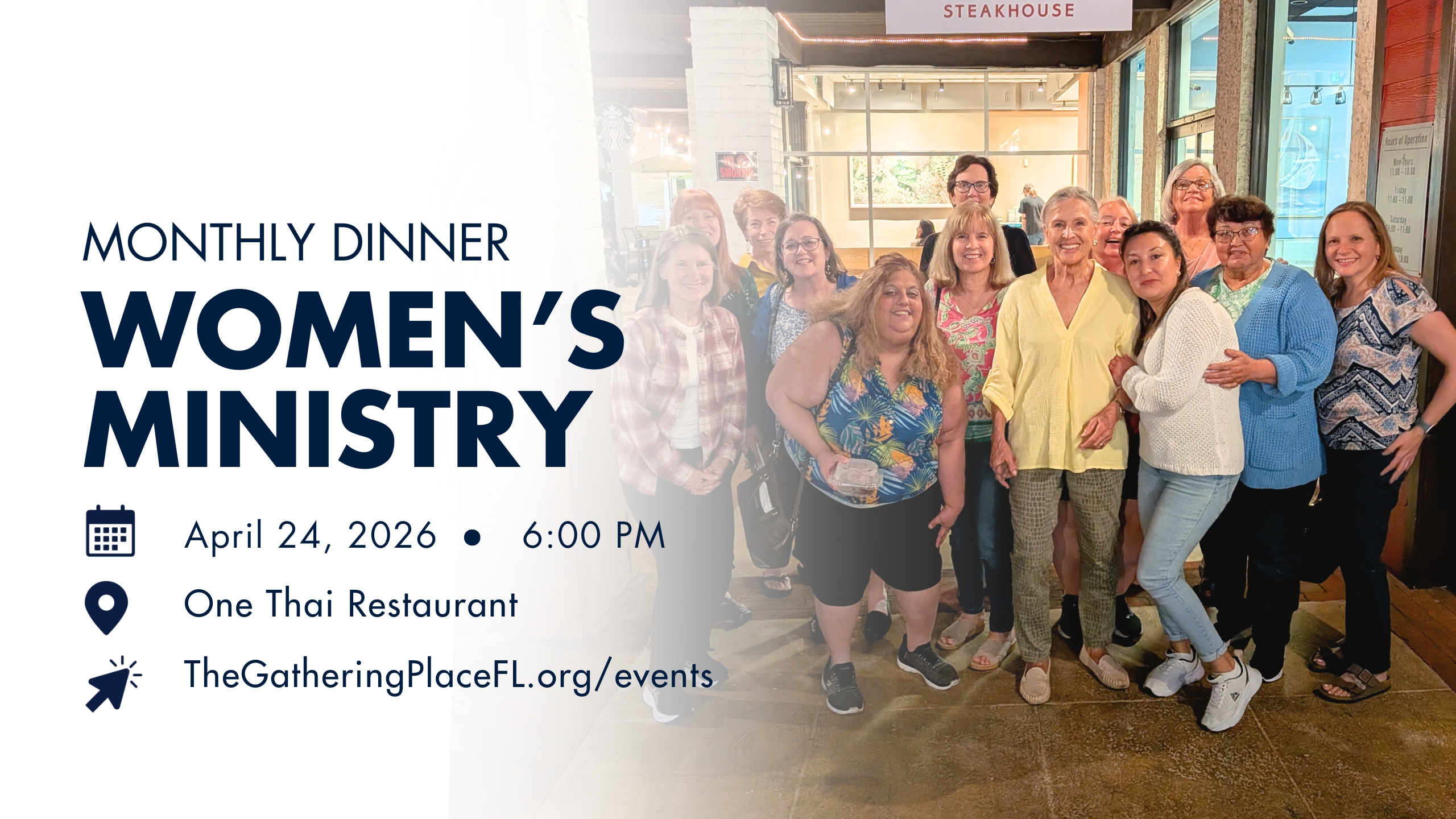 Enjoy a welcoming evening of food, conversation, and connection with other women at our monthly dinner. Come as you are and be refreshed in community.