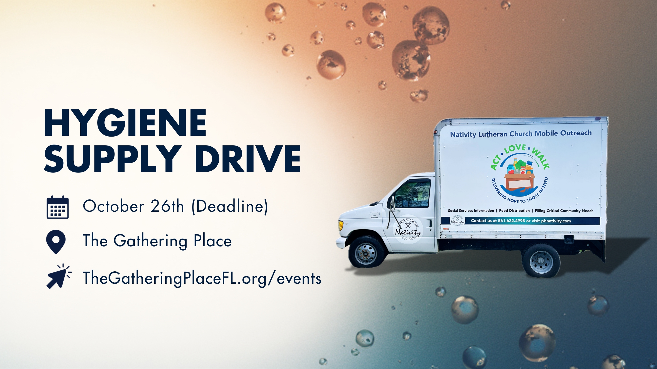 Collection Begins Sunday, October 12 | During Service | Sanctuary Lobby The Gathering Place is partnering with Nativity Lutheran Church in Palm Beach Gardens to support the Act–Love–Walk Ministry, which provides care bags to those in need. We’ll be collecting hygiene items to include with food bags that will be distributed during their next community… Read More »Hygiene Items Drive | October 12–26, 2025