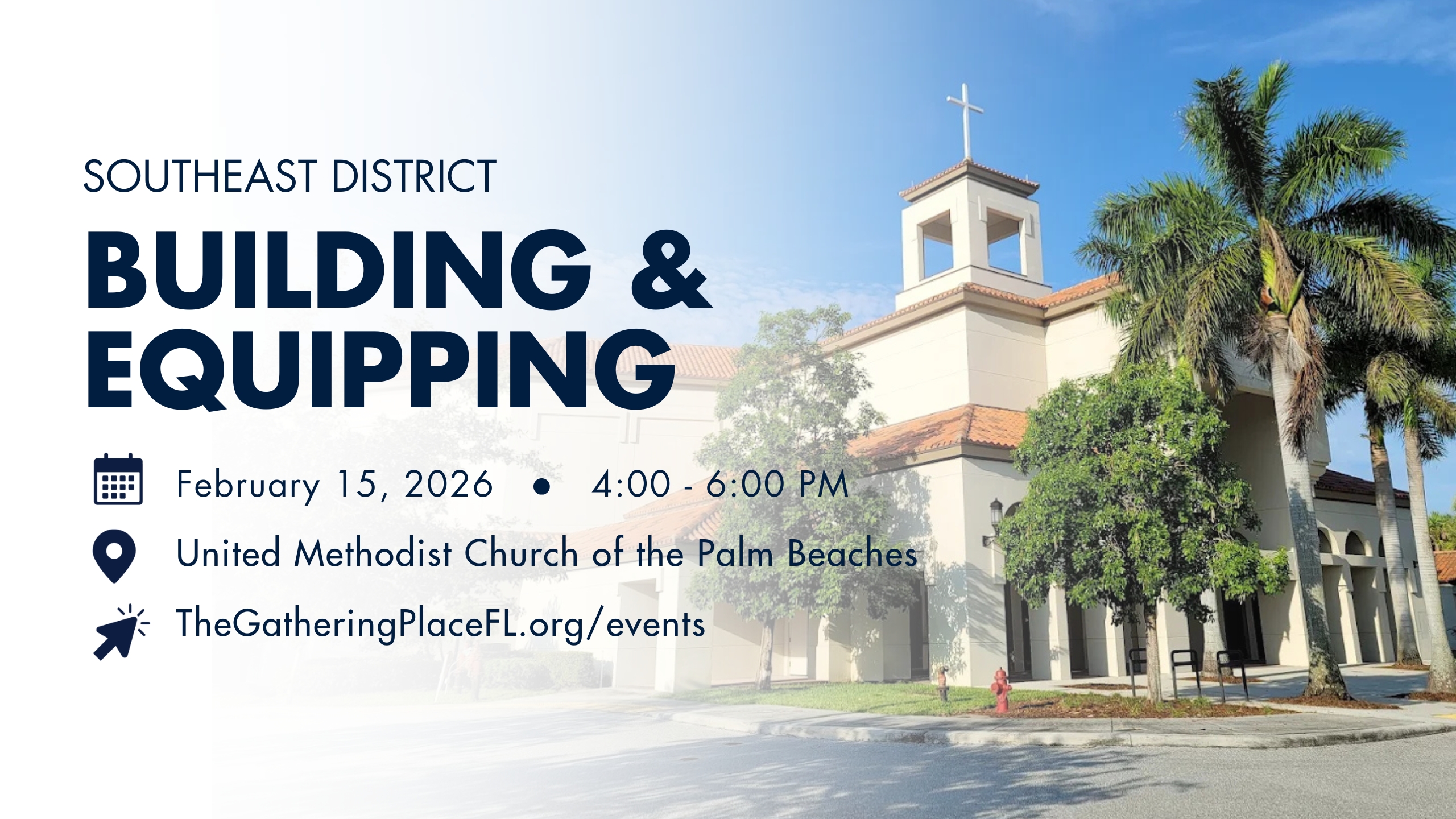 United Methodist Church of the Palm Beaches invites clergy and lay leaders from across the Southeast District to gather for an afternoon of vision, collaboration, and renewal. This districtwide Building… Read More »Southeast Districtwide Event: Building & Equipping